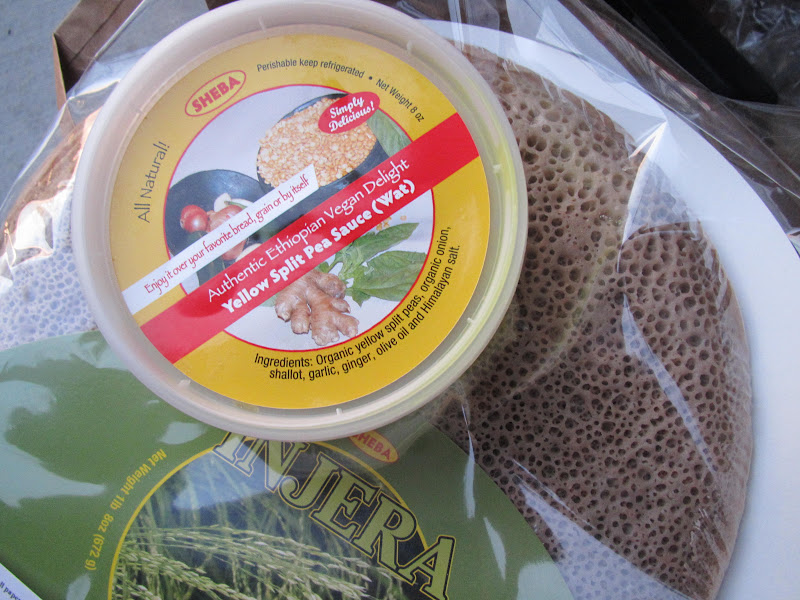 Don’t you love it when you go into a store and they are handing out free morsels of food..AND IT’S VEGAN! Right now, as I gather ideas for recipes in my beloved San Francisco, I have so much ‘incoming’ that I’m having difficulty stringing a meal together myself. My ‘at home’ meals have been bowls of spicy dahl with chunky ginger and ‘vampire slaying’ amounts of garlic, or just simple kale and tomato salads with avocado and lime. Honestly, the organic food here is so good, it’s fabulous in it’s birthday suit. But yesterday, as I wandered up and down ailes in Rainbow Grocery (with a stupid happy grin on my face…I’ve got to stop that..but it just makes me so happy!) an exotic woman handed me some fresh injera bread with hummus at its core. It was creamy and complimented the fermented ‘tang’ of the bread well. I must say, I am rather partial to my homemade batches of chickpea pate and her Eritrean version of making it from chickpea flour instead of the whole little yella fella, failed to turn me. BUT, when she slathered some bright yellow WAT (split pea sauce) on some more GLUTEN FREE teff injera I practically begged her to come and be my chef. She refused but told me I can get tubs of the stuff and big beautiful Frisbees of the injera bread at any time in Rainbow in San Francisco. In March 2012, she’s going to be serving up the stuff in Oakland for all you Bay beauties (JEALOUS!).
