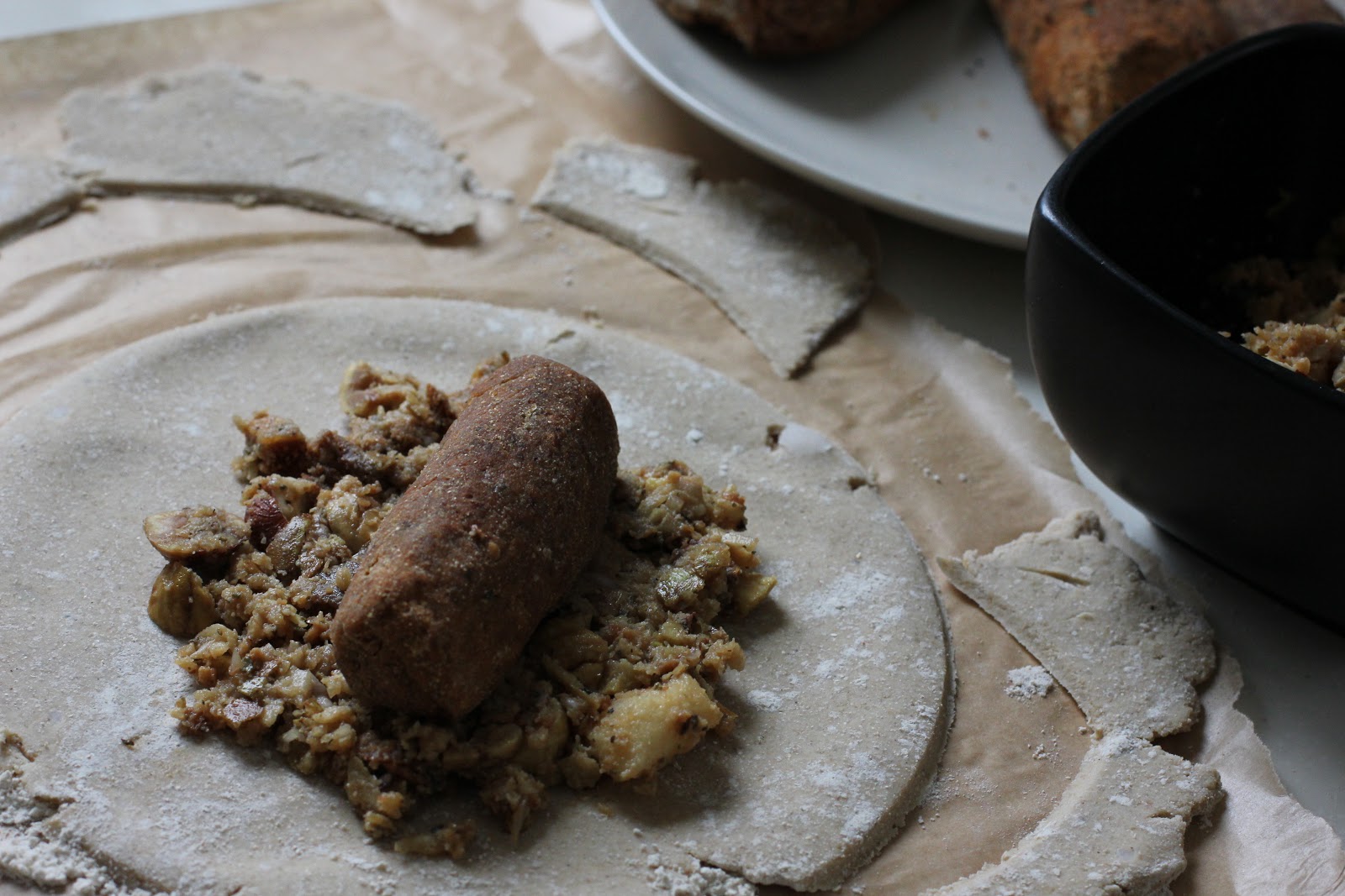 - Combine the drained cauliflower, chia ‘egg’, flours, nutritional yeast, and seasonings. Mix to a dough. If too wet add more flour.