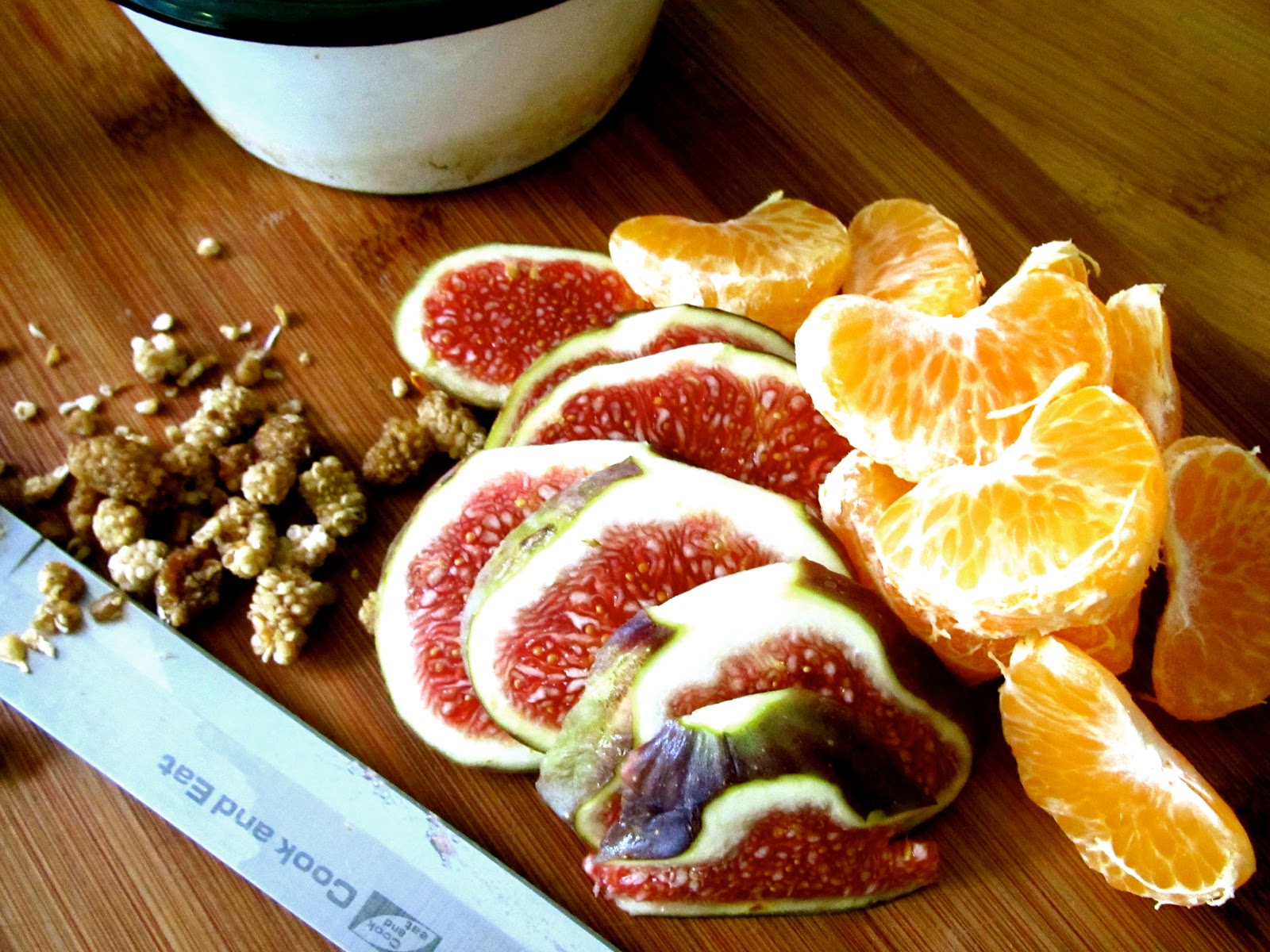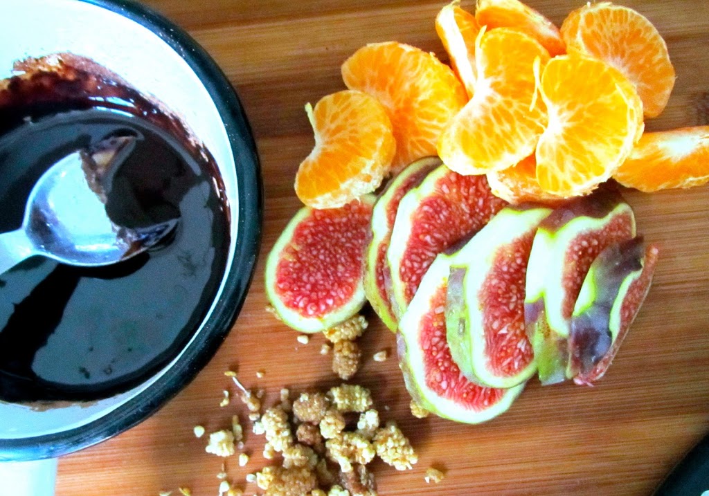 I also dipped slices of succulent, fresh fig, and small nibs of dried sweet mulberries. Both are low GI. Add a little pinch of chili powder for a brazen little kick.