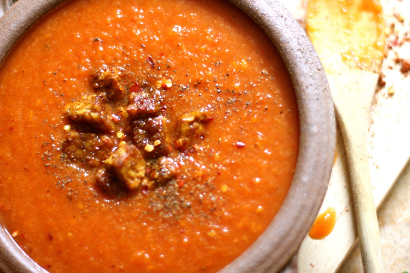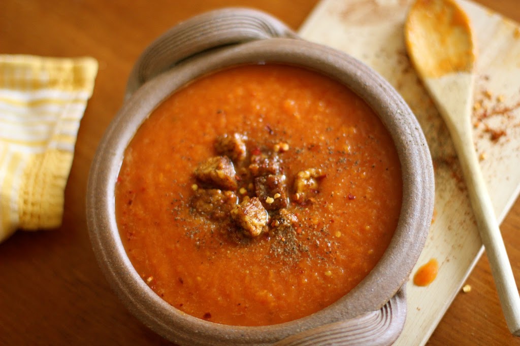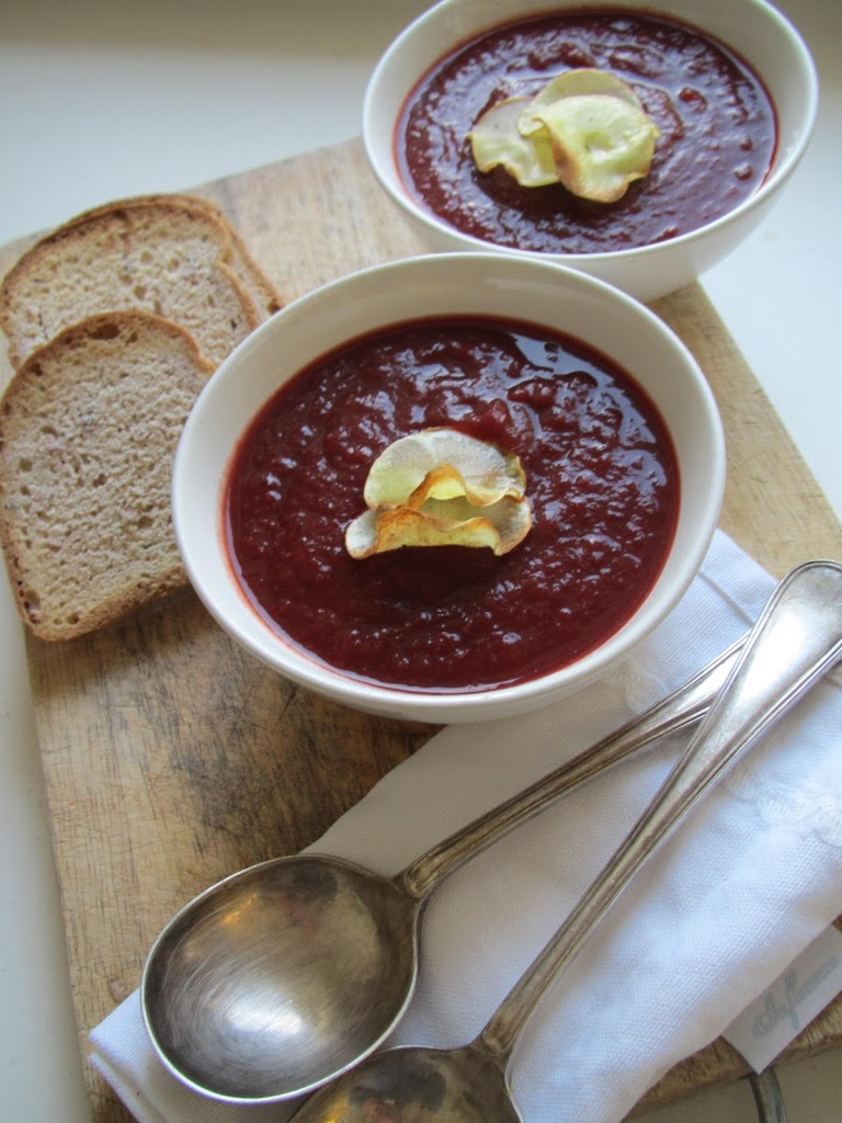 - Drain and rinse the soaked almonds and put them with the broccoli, mint, vegan stock cube, garlic and lemon juice, into a blender. Put in enough water to cover the broccoli and blend until creamy. Add more water until it is thick, creamy and soupy. Season to taste. Warm through in a saucepan.